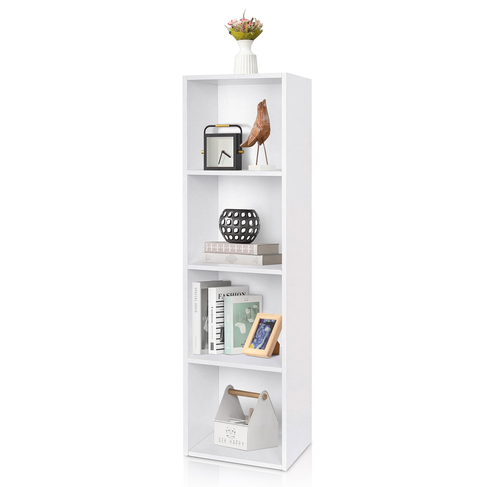 Akozon 4 Tier Cubby Open Shelf Bookcase 4 Section Book Shelving Storage Organizer For Living Room Bedroom White Walmart Com